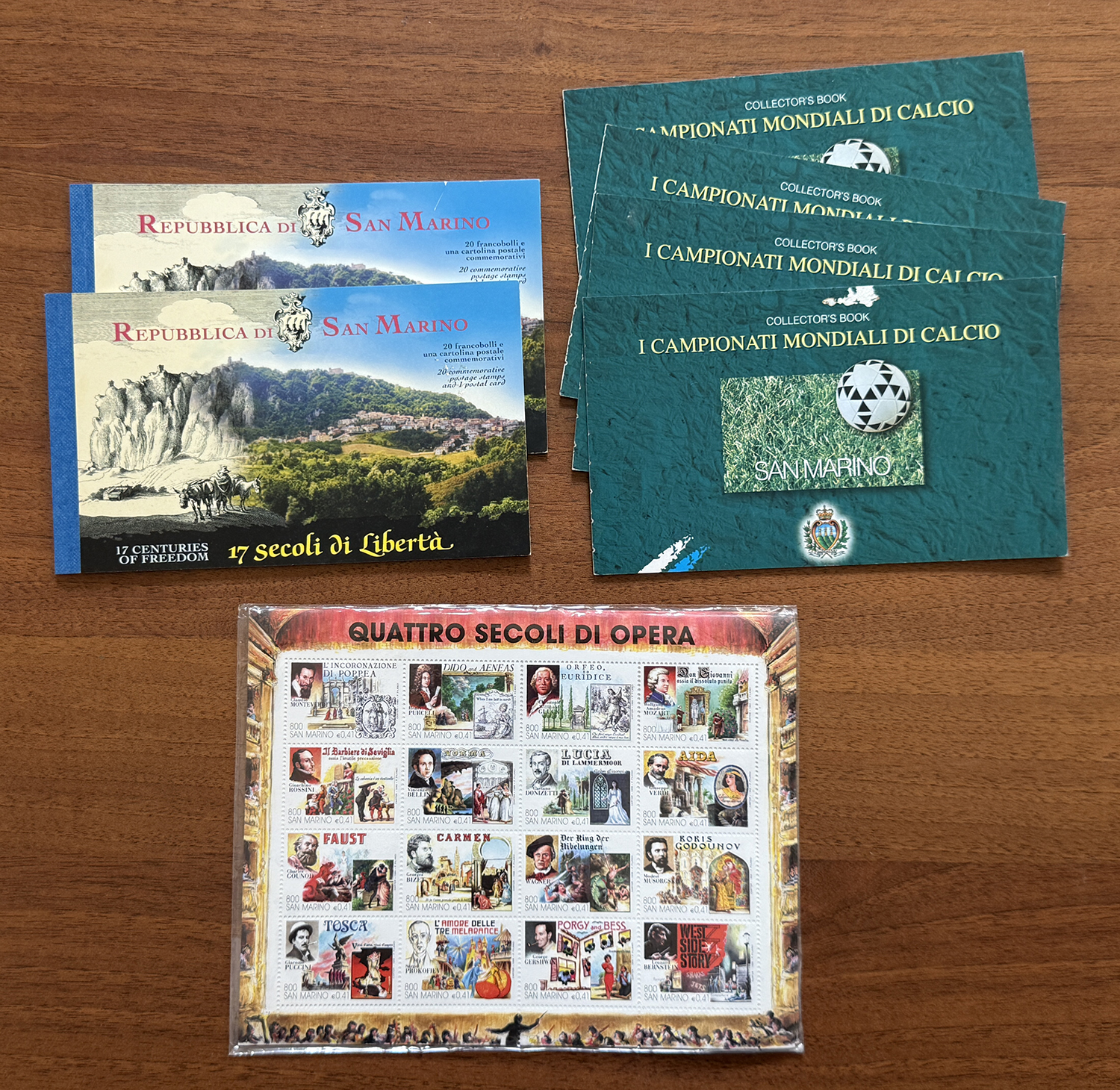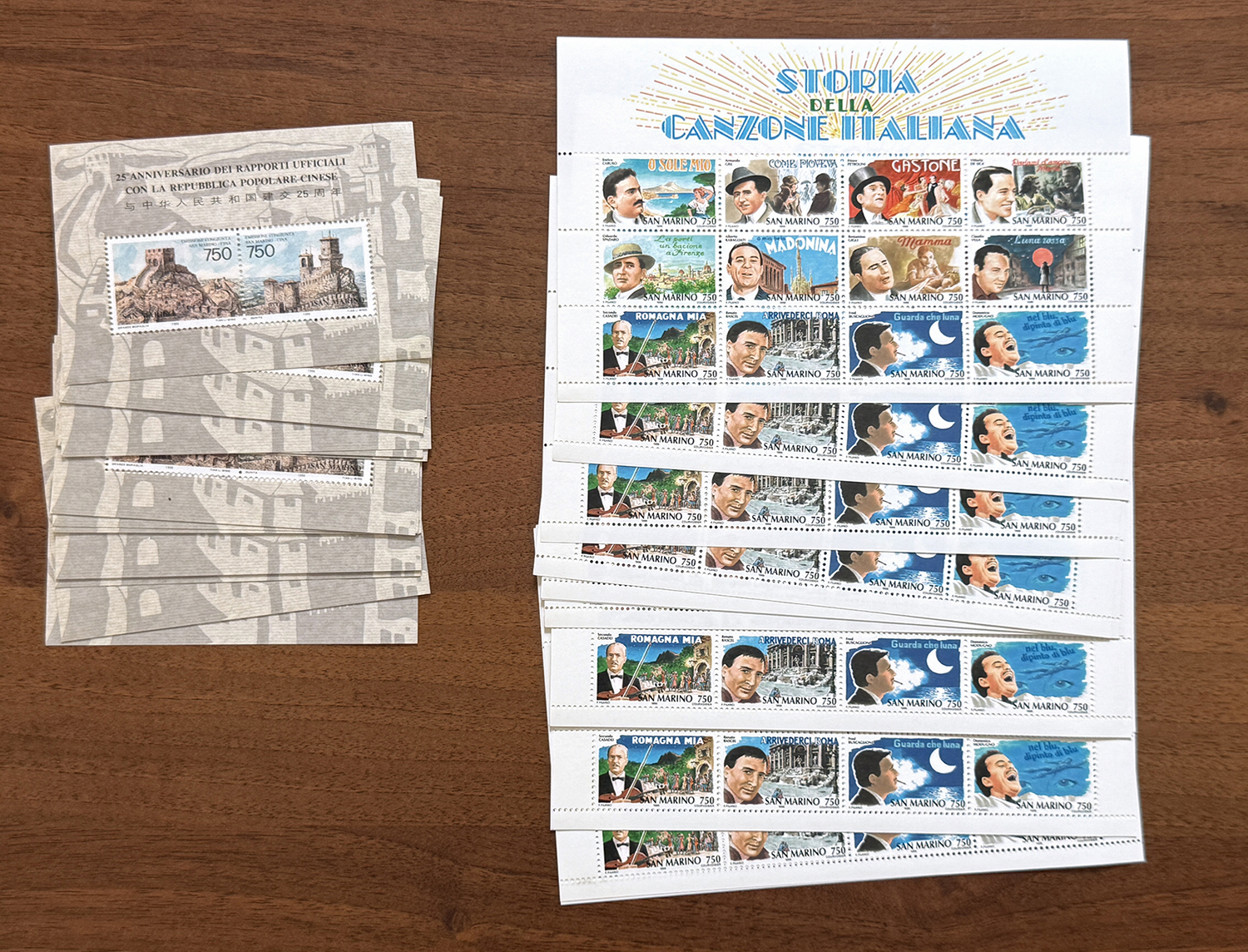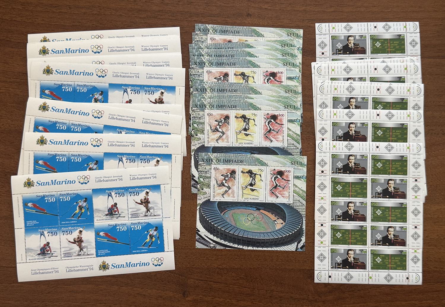 SAN MARINO FOGLIETTI/LIBRETTI 1989/1995 - Accumulazione di foglietti e libretti del periodo, anche molto ripetuti, in una scatola. Elevato valore facciale.