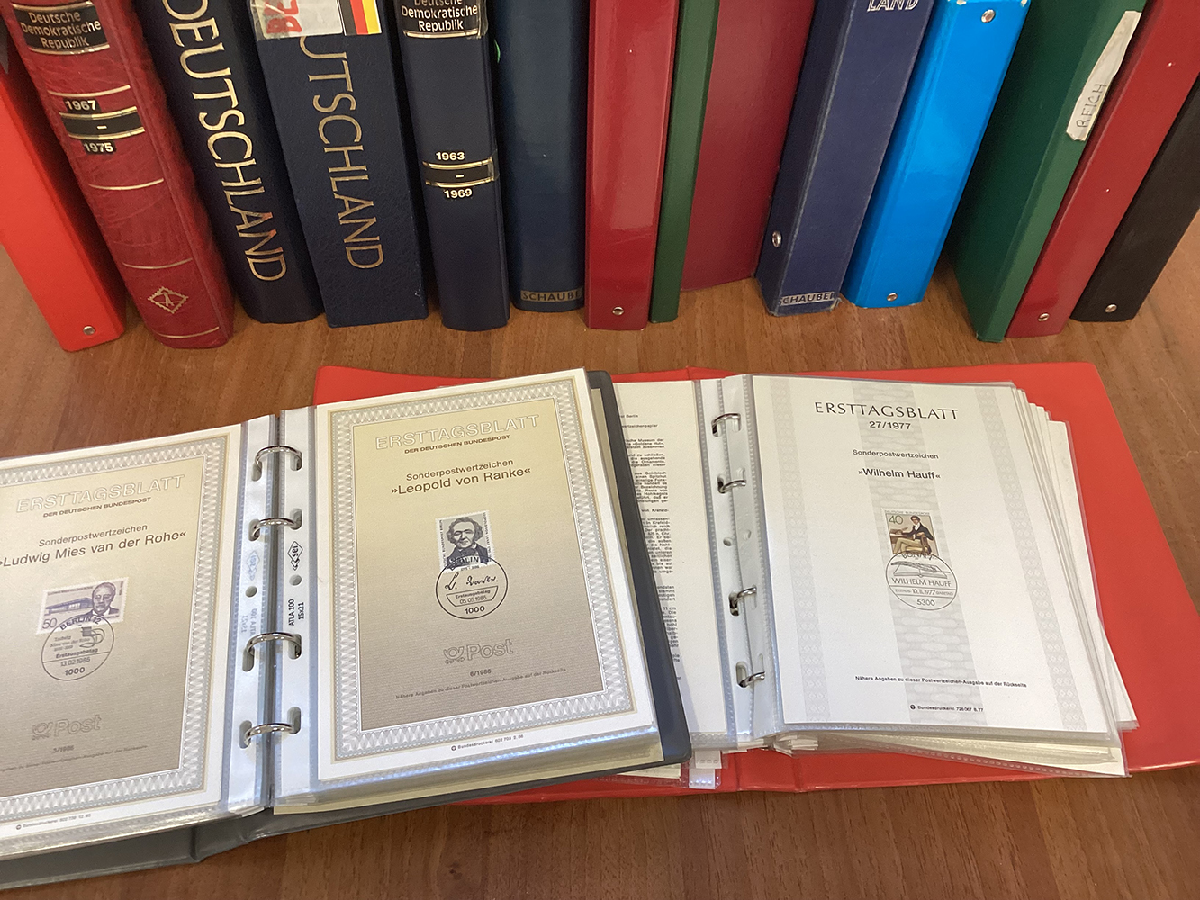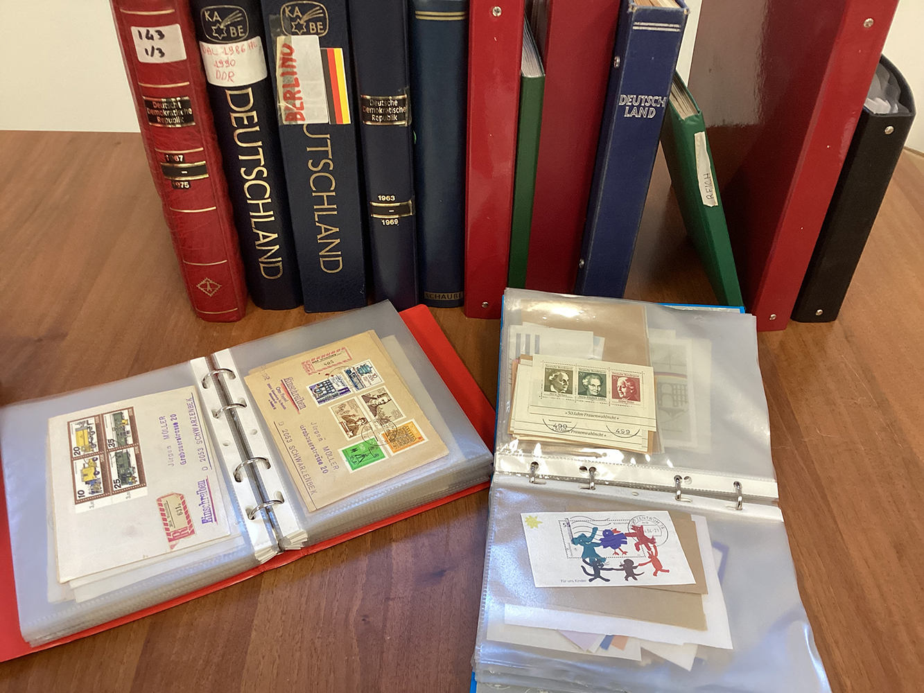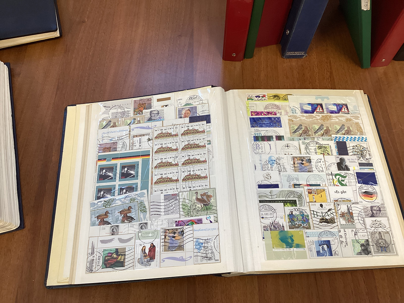 GERMANIA 1872/2000 - Quindici album/raccoglitori/classificatori con collezioni/accumulazioni di francobolli, nuovi e usati, del periodo, in due scatoloni. Divertente.