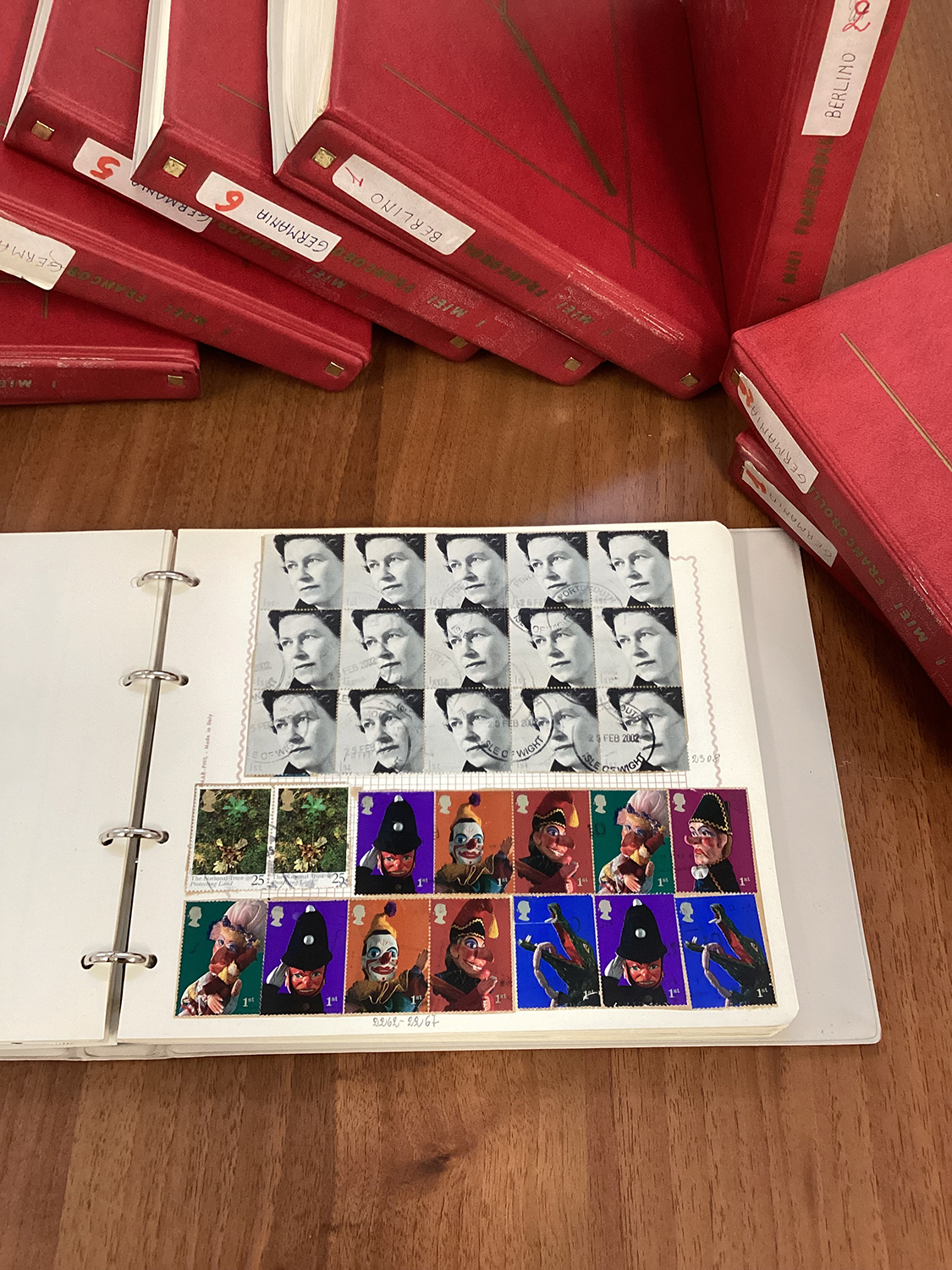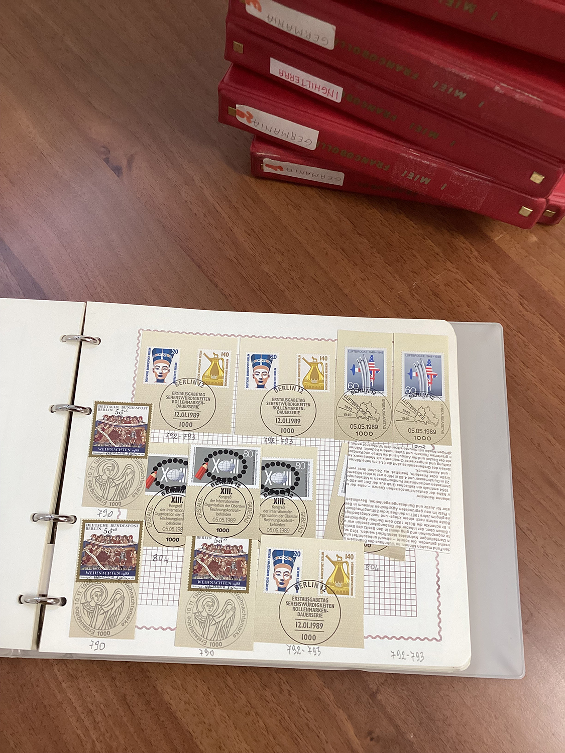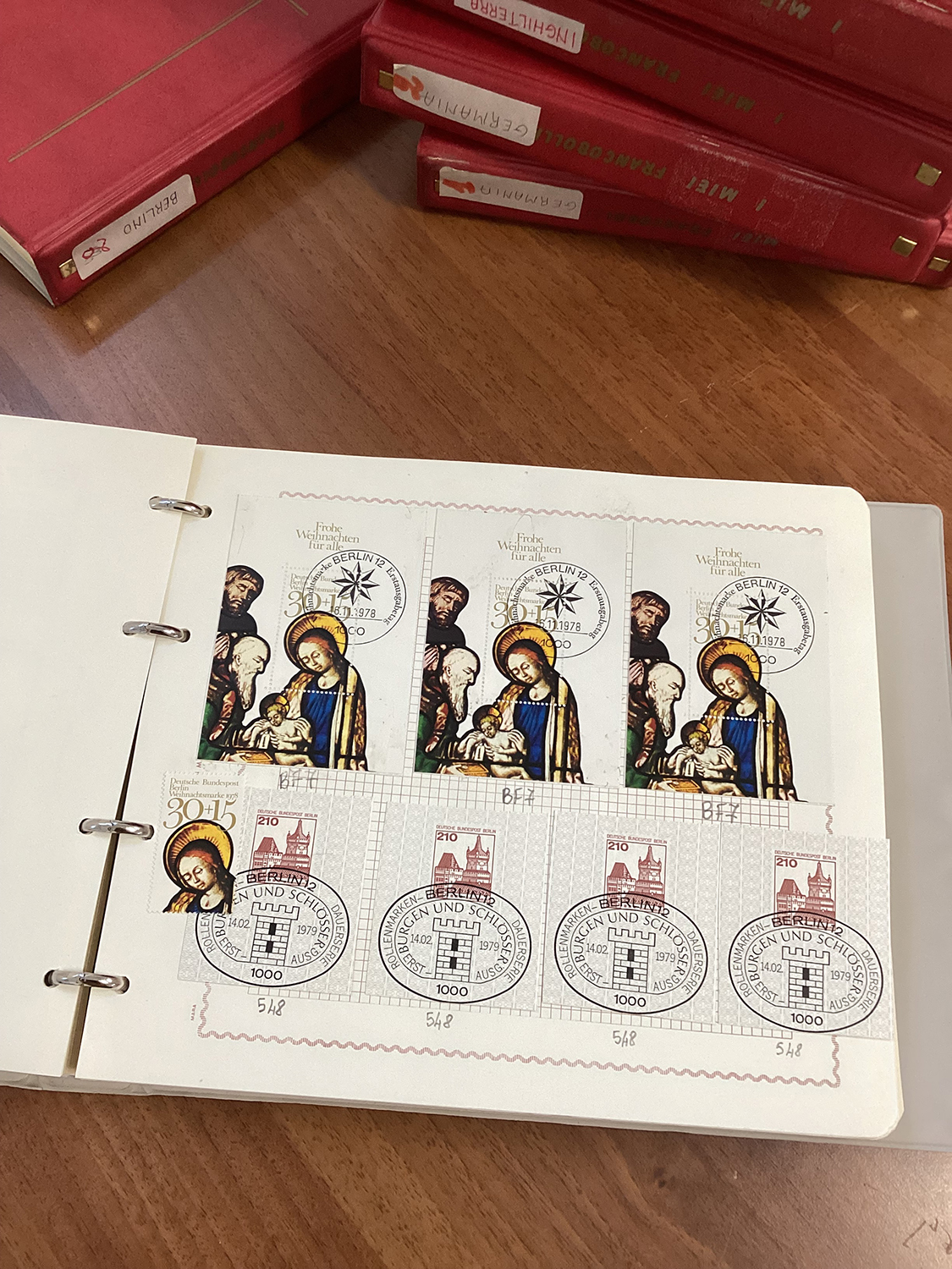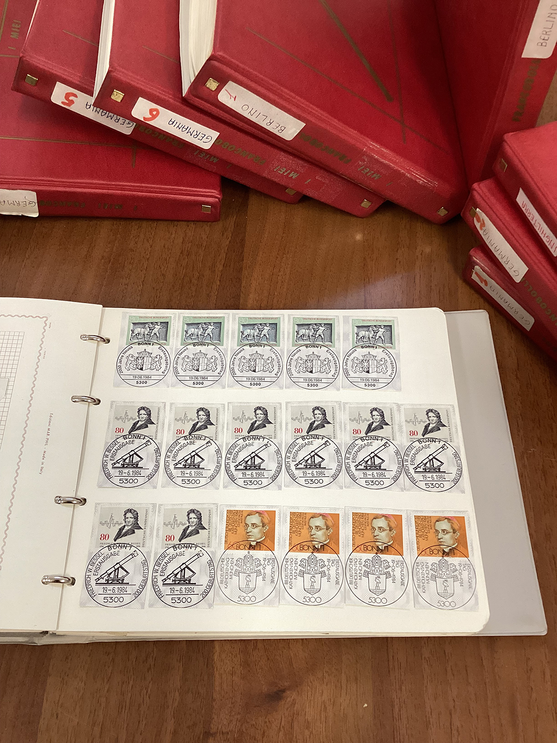 GERMANIA 1960/1985 - Otto raccoglitori con francobolli del periodo, ripetuti, su frammenti con annulli speciali FDC. Allegato un album con materiale comune di Gran Bretagna.