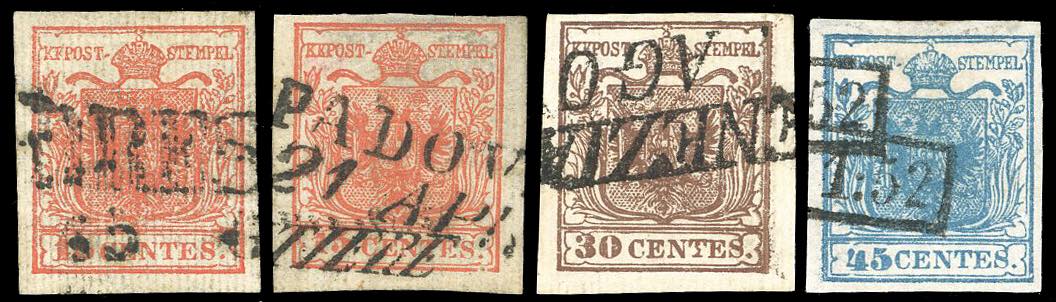 Lot 6 - 1851 - Serie completa di 4 esemplari con carta a coste ...