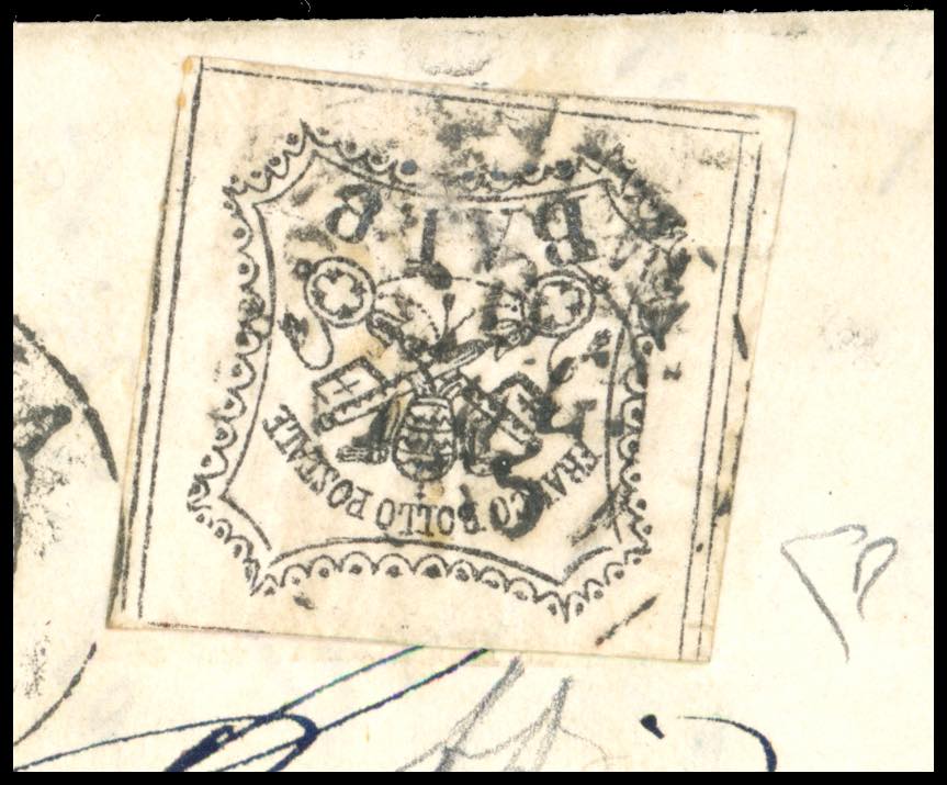1855 - 8 baj bianco, falso per posta del I tipo (F4), perfetto e ben marginato, su gran parte di lettera, incompleta al verso ma con bollo ... Read more