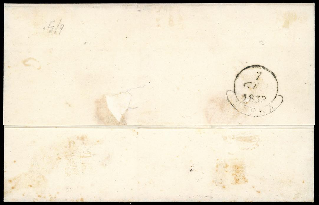 1853 - 2 crazie azzurro chiaro su grigio (5), evidente pli d'accordeon orizzontale, perfetto, su fresca lettera da Asciano 7/1/1853 a ... Read more