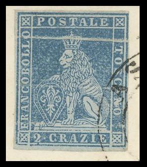 Lot 203 - 1853 - 2 crazie azzurro chiaro su grigio (5), evidente pli ...