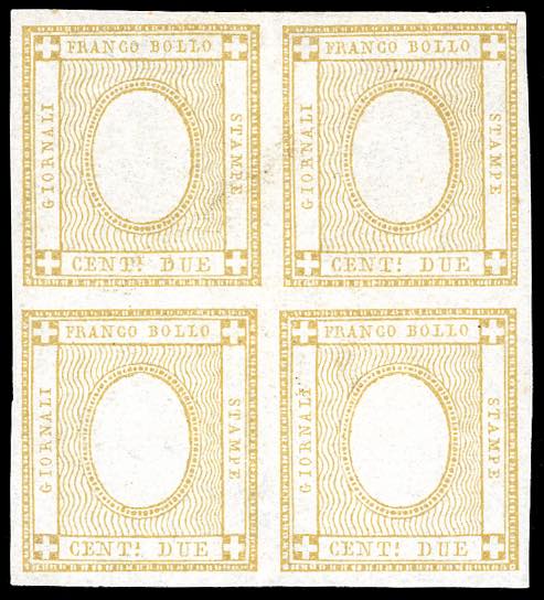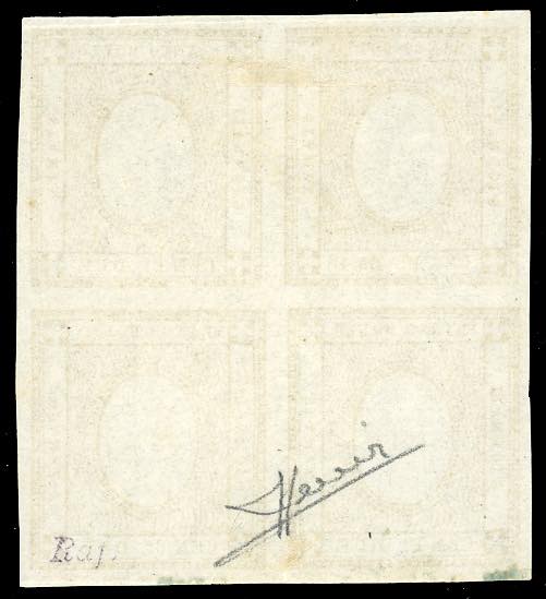 1862 - 2 cent. bistro, SENZA CIFRA IN RILIEVO (10eb), blocco di quattro, nuovo, gomma originale, perfetto e molto fresco. Molto raro con ... Read more