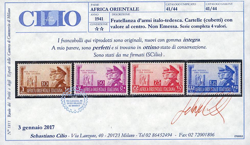 Lot 481 - 1941 - Fratellanza d'armi, non emessi, serie completa ...