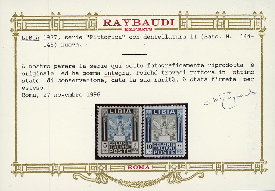 1937 - 5 lire e 10 lire Pittorica, senza filigrana, dent. 11 (144/145), ottima centratura, gomma originale integra, perfetti. Splendidi e rari di questa qualità. A.Diena, cert. Oro Raybaudi e Ferrario.