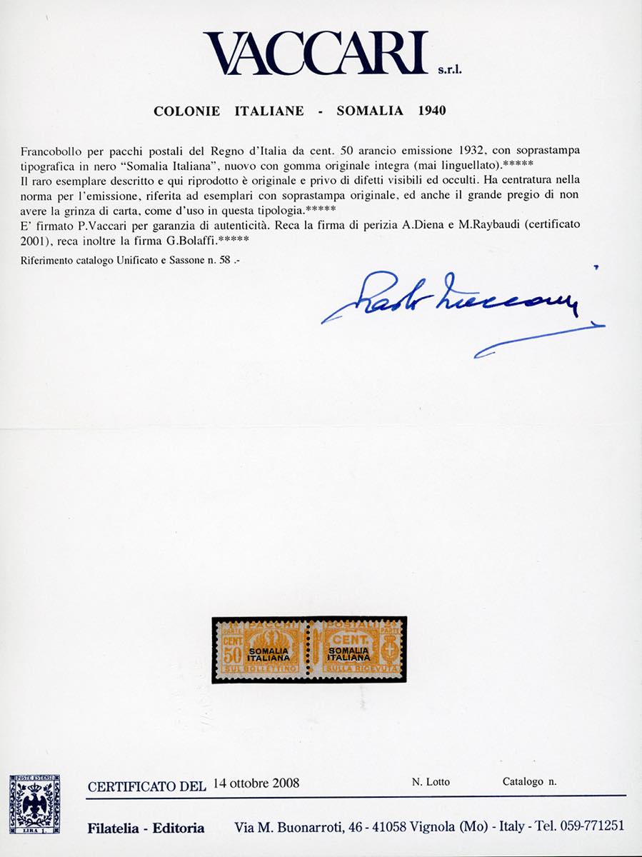 PACCHI POSTALI 1928/41 - Fascio al centro, soprastampa del I tipo, serie completa (54/65), gomma originale integra, ad eccezione del 10 lire che presenta una leggera traccia di linguella, perfetti e molto freschi. Il raro 50 cent. firmato G.Bolaffi, A.Diena, cert. Oro Raybaudi e Vaccari, 1 lira e 2 lire cert. E.Diena.