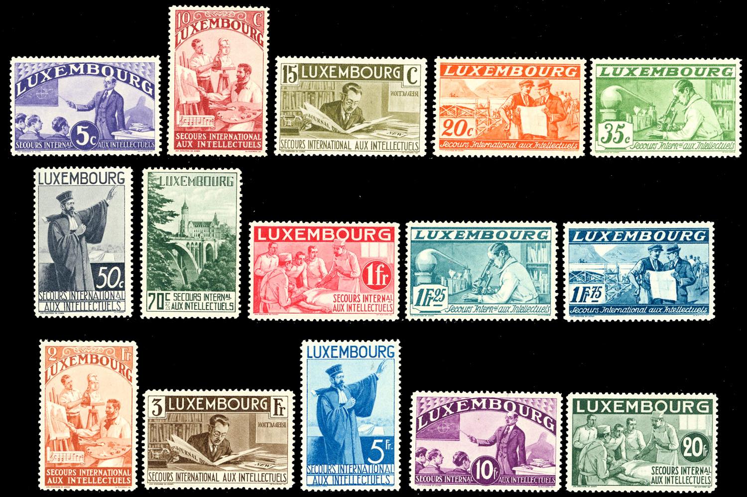 LUSSEMBURGO 1935 - Intellettuali, serie completa (Unif.259/273), nuovi, gomma originale integra, perfetti, MNH.