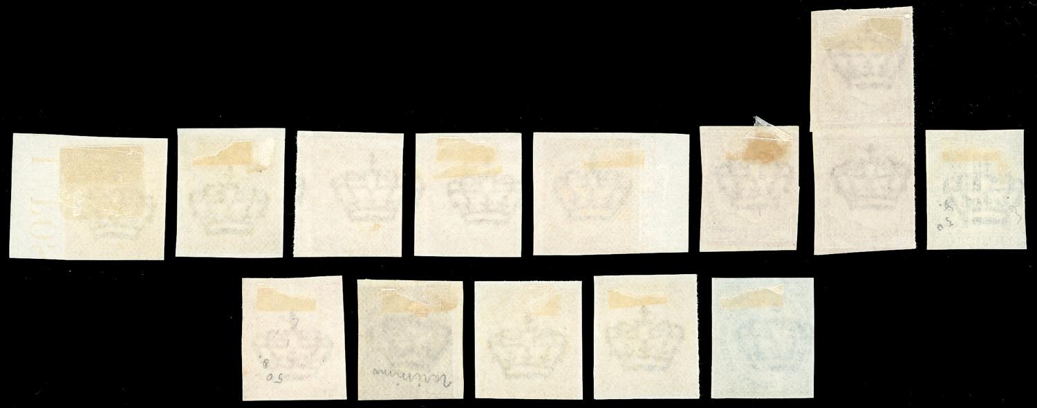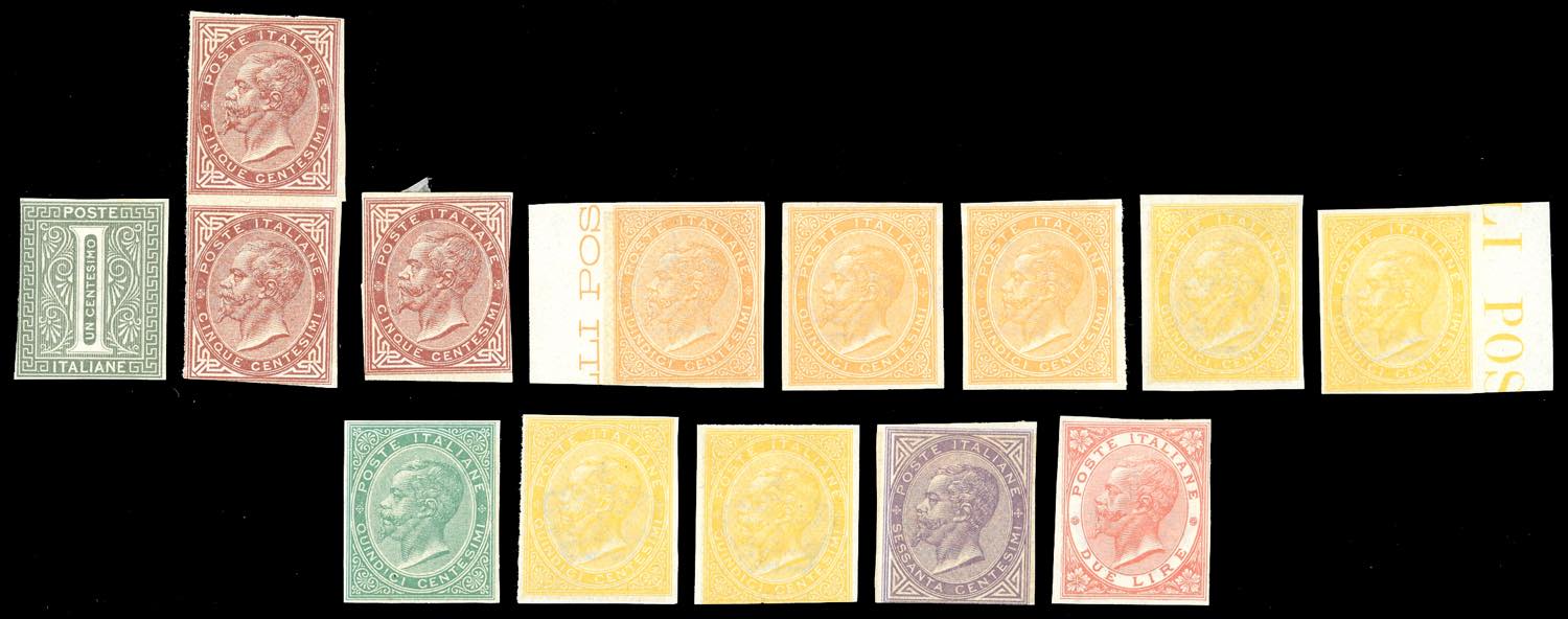 REGNO D'ITALIA PROVE E SAGGI 1863 - Lotto di 14 prove dell'emissione De La Rue, non dentellate, perfette. Non comuni.