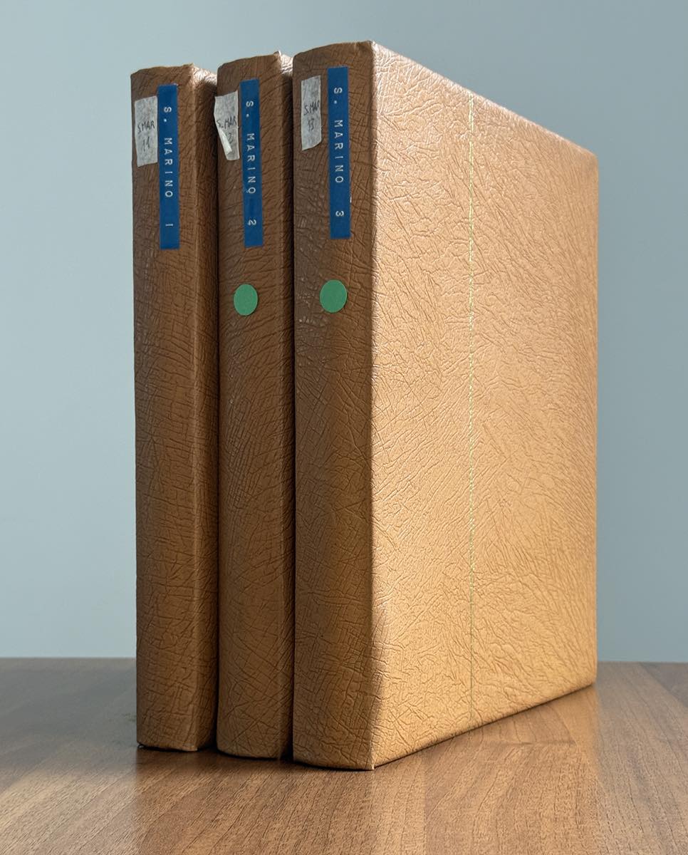 SAN MARINO 1877/1981 - Ben avviata collezione di francobolli e servizi del periodo, in tre album Marini. I francobolli sono usati o linguellati fino ai primi anni '50, successivamente con gomma integra. Qualche esemplare con gomma bicolore, alto valore di catalogo.