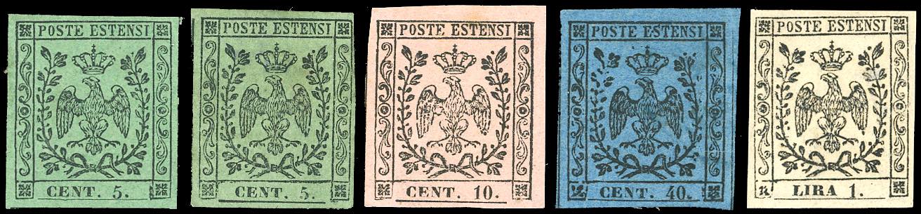 1852/55 - Emissione con punto dopo le cifre, serie completa (7/11), nuovi, gomma originale, perfetti. A.Diena, cert. Ferrario.