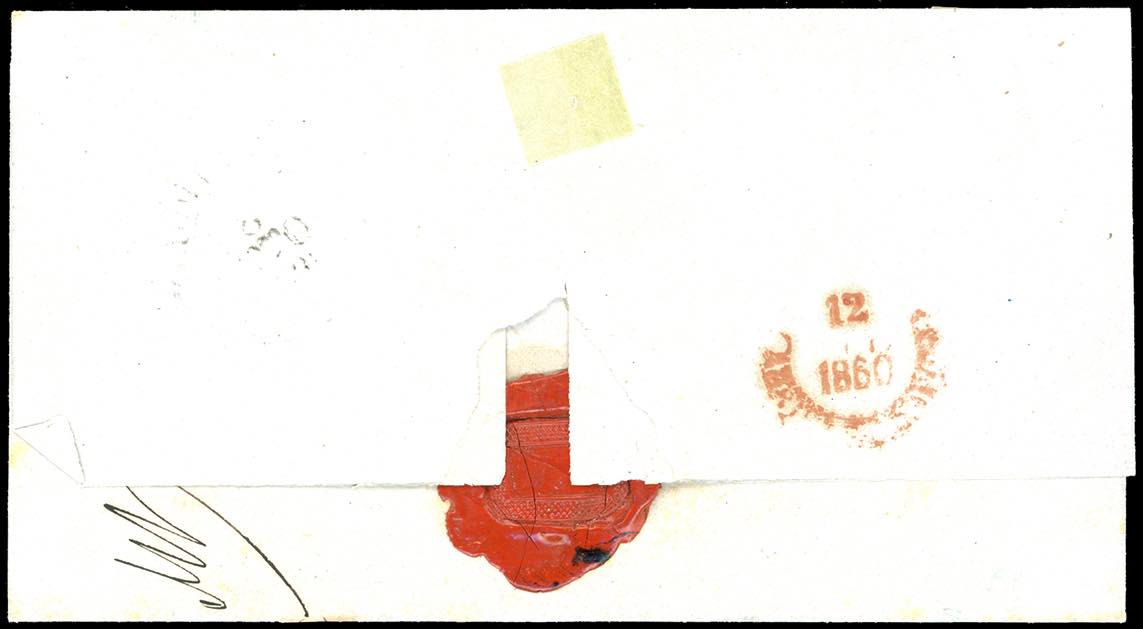 1860 - 5 grana carminio scuro, II tavola (9b), perfetto, su lettera da Gallipoli 8/10/1860 (svolazzo,punti 8), a Napoli. Raro l'annullo a ... Read more