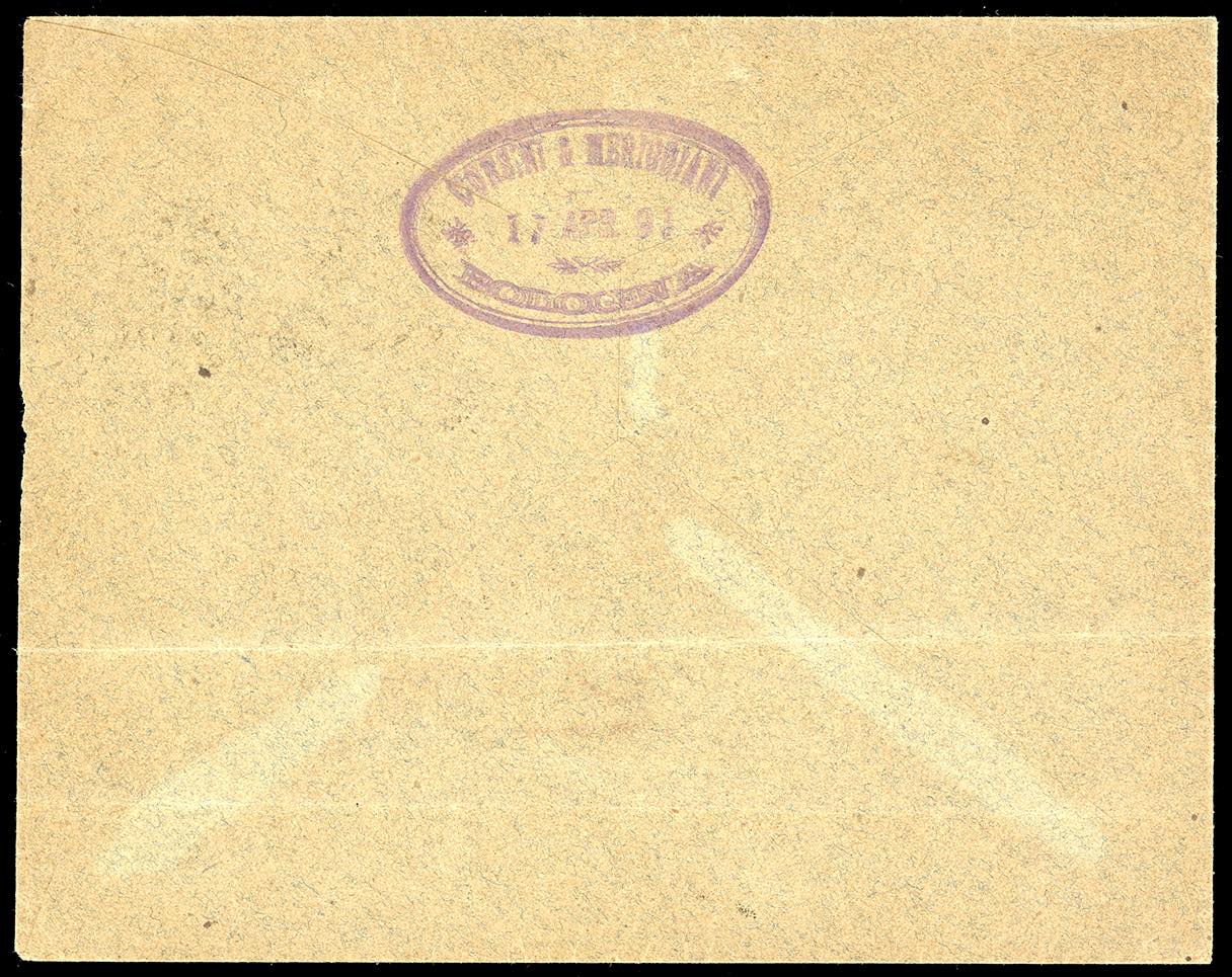 1891 - 2 cent. su 5 cent. Umberto I, soprastampato (56), perfetto, su busta da Bologna 17/4/1891 a Savona. Si tratta della PRIMA DATA D'USO NOTA PER QUESTO FRANCOBOLLO (il catalogo Sassone indica come data d'emissione il 20/4/1891). Rarità per specialista. Cert. Ferrario.