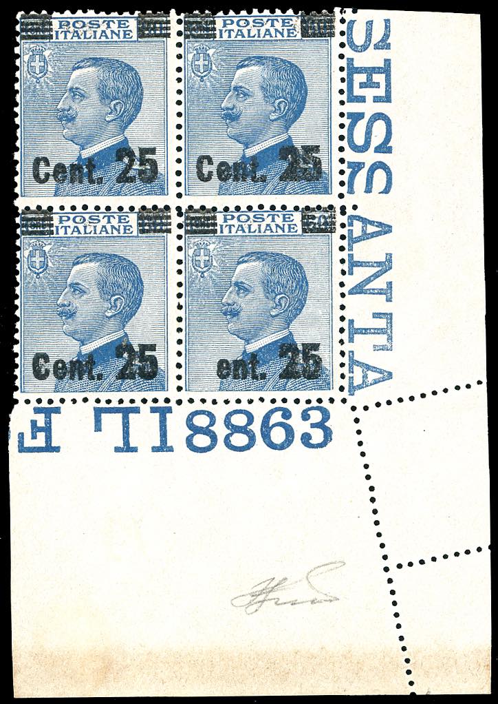 Lot 1010 - 1924 - 25 cent. su 60 cent., soprastampa del I tipo, blocco ...
