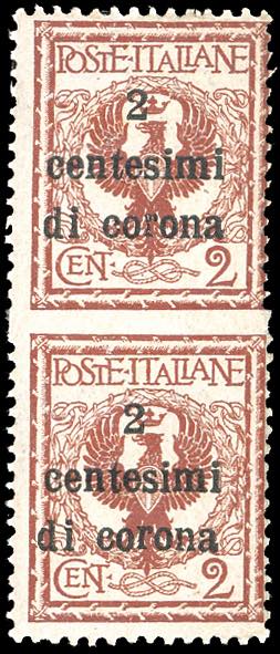 Lot 1690 - TRENTO E TRIESTE 1919 - 2 cent. su 2 cent., coppia ...