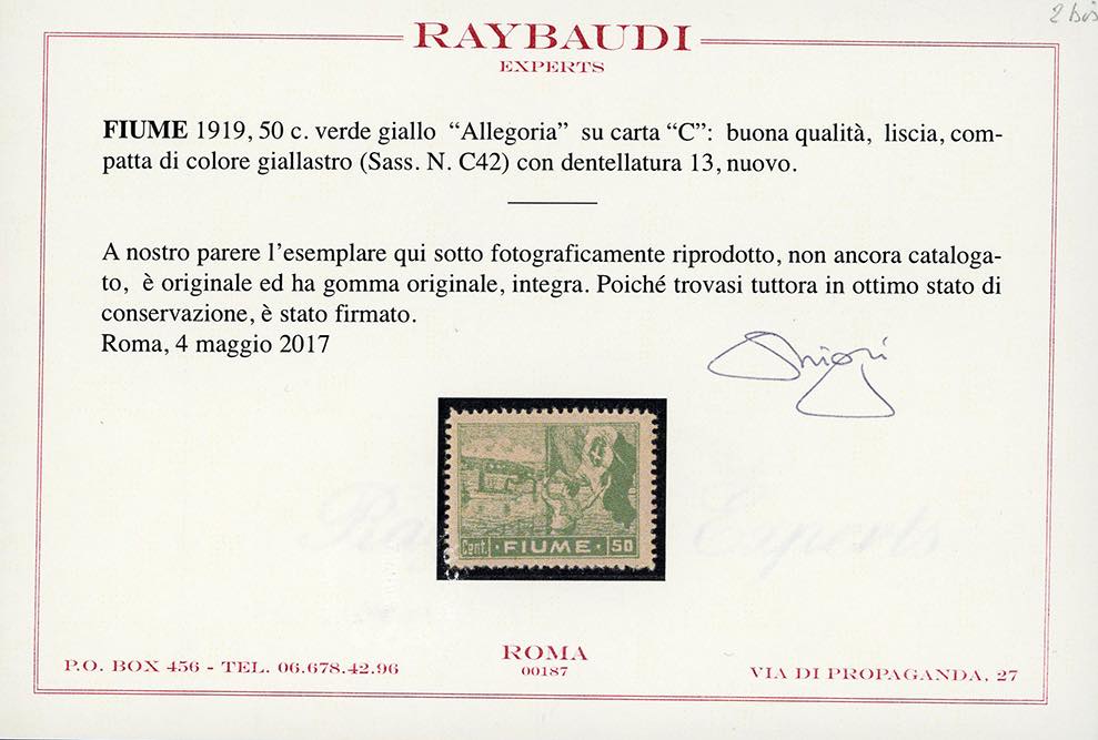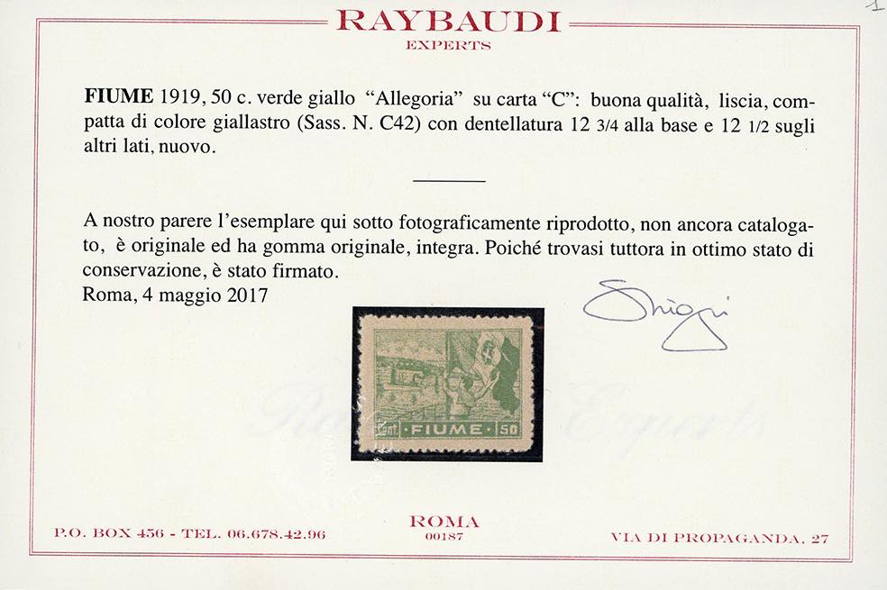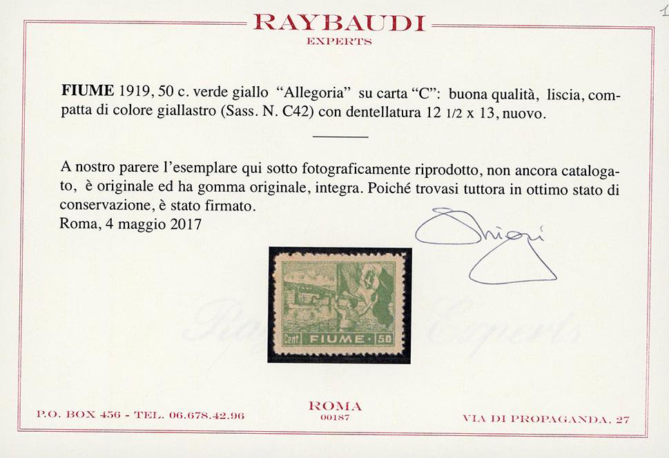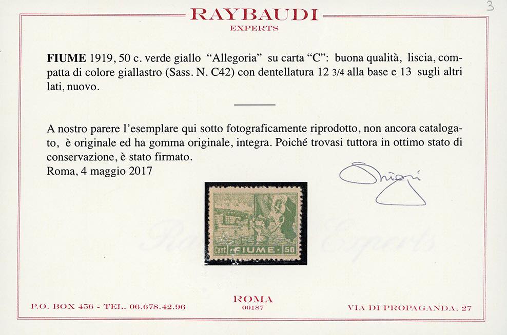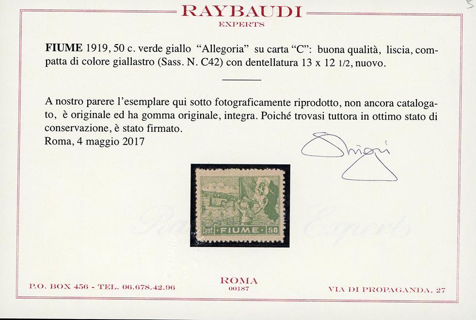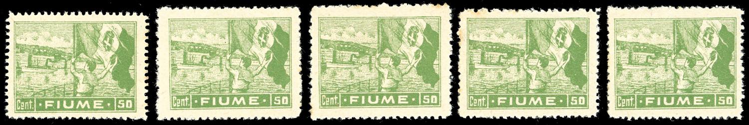 Lot 1705 - FIUME 1919 - 50 cent. Allegoria, carta C (C42), cinque ...