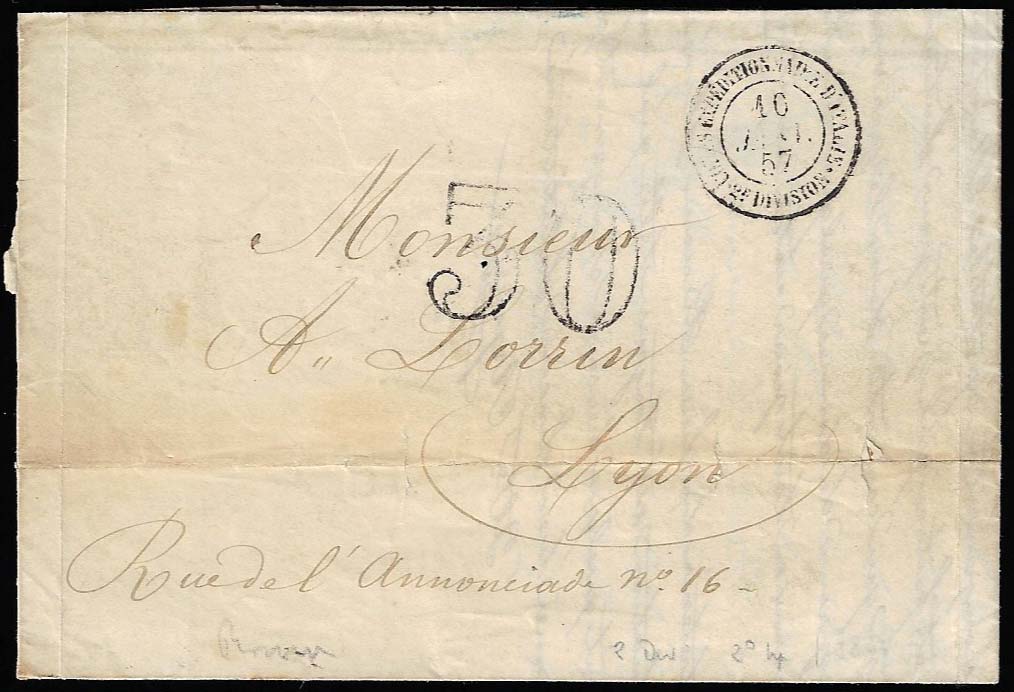 COPRS EXPEDITIONNAIRE D'ITALIE 2E DIVISION - Lettera non affrancata del 10/1/1857 per Lione, tassata 30 cent.