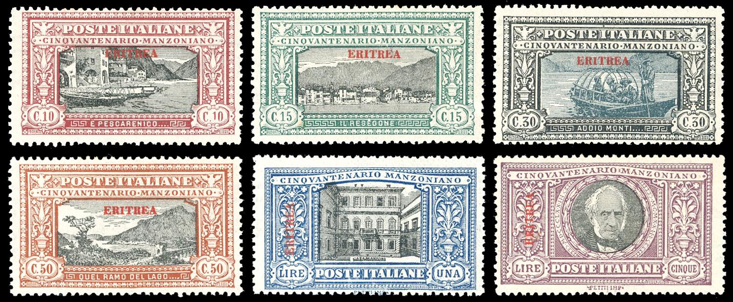 1924 - Manzoni, serie completa (71/76), nuovi, gomma originale integra, perfetti. A.Diena e cert. Ferrario per il 5 lire.