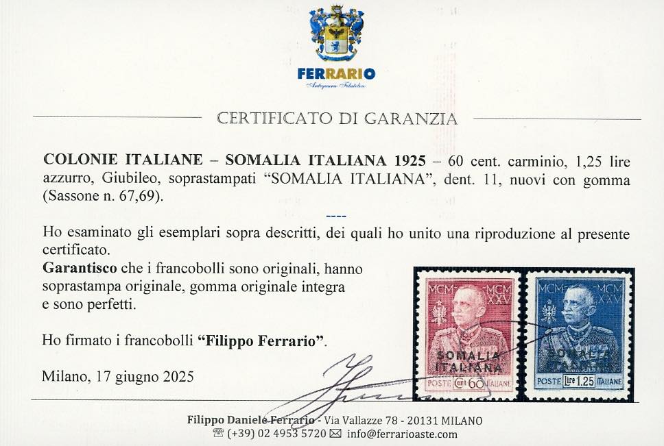1925/26 - Giubileo, serie completa con entrambe la dentellature (67/69,70/72), nuovi, gomma originale integra, perfetti. A.Diena e cert. Ferrario per i due alti valori.