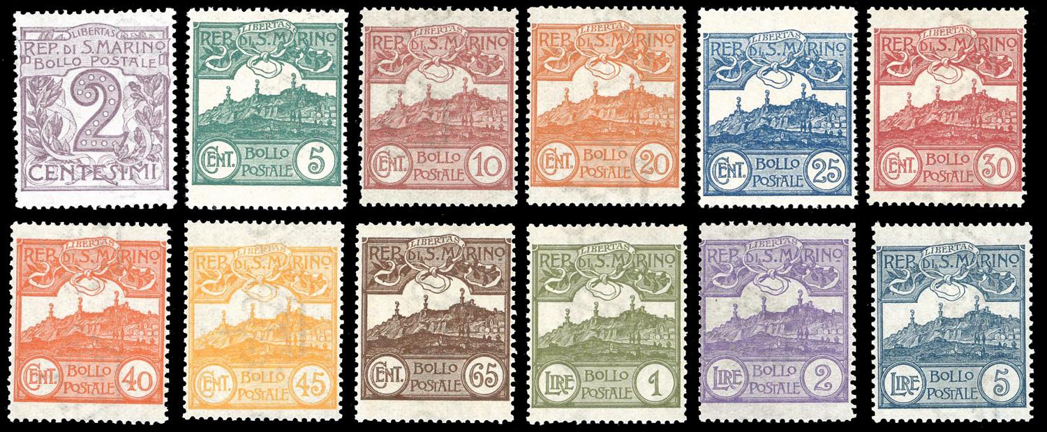 1903 - Cifra o veduta, serie completa (34/45), nuovi, gomma originale integra, perfetti. Molto freschi. Cert. Ferrario per i due alti valori.