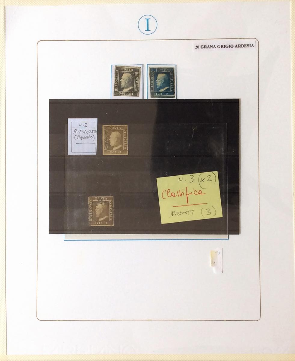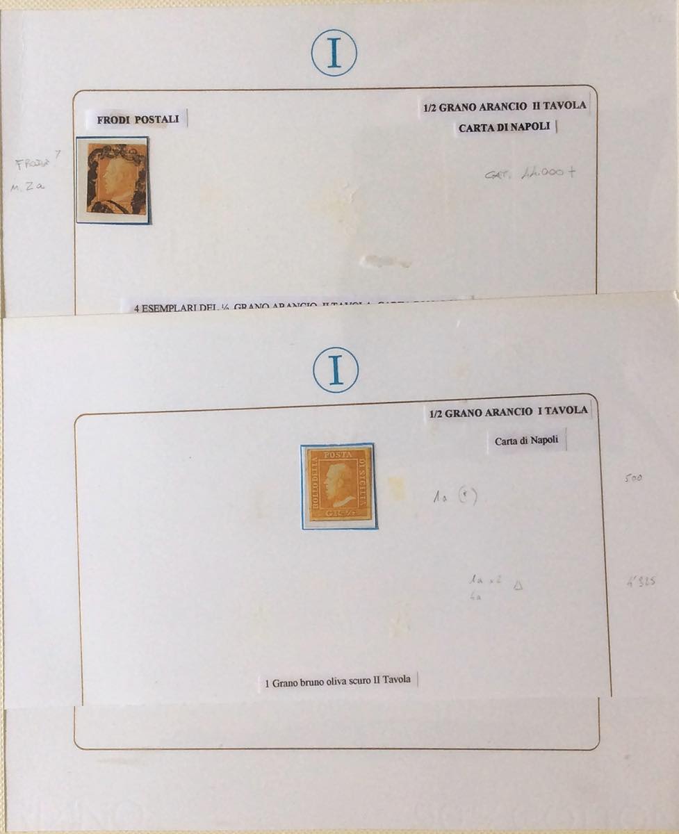 SICILIA 1859/1860 - Interessante resto di collezione del Prof.Imperato, composto da 46 francobolli nuovi o usati e 10 lettere, generalmente montati ancora su fogli da esposizione. Qualità mista, ma di sicuro interesse. Alto valore di catalogo.