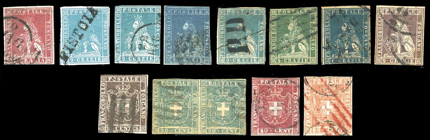 Lot 2502 - TOSCANA 1851/60 - Piccolo insieme di 13 esemplari del ...