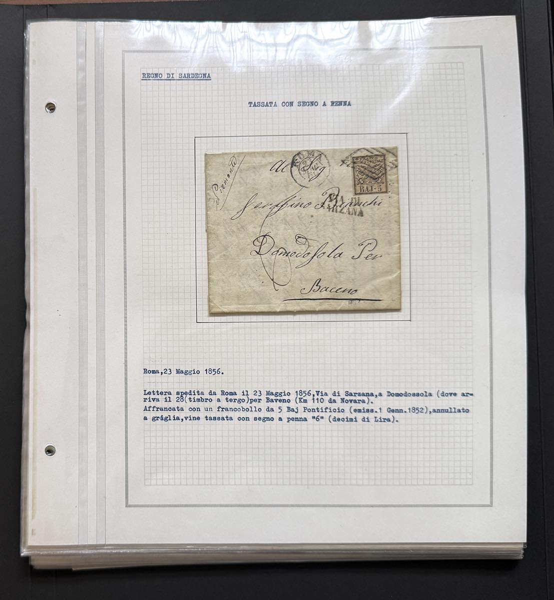 ANTICHI STATI ITALIANI 1842/1867 - Collezione di 19 lettere per lo più affrancate, tutte tassate, montate su fogli d'esposizione. Interessante insieme, ottimo per dettaglio.