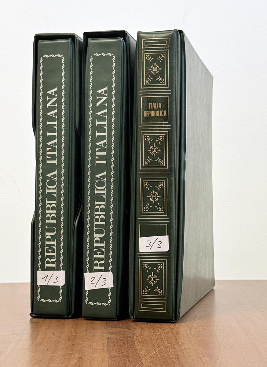 REPUBBLICA ITALIANA 1945/2001 - Collezione pressochè completa di francobolli usati del periodo di posta ordinaria, posta aerea, segnatasse tra cui 8 lire stelle, in 3 album Marini. Manca il Gronchi Rosa e i Ginnici sono nuovi.