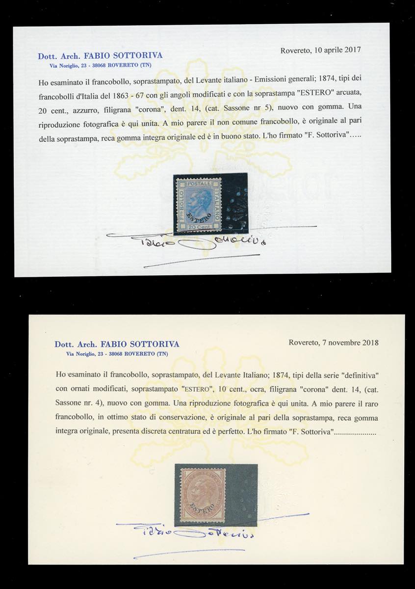 UFFICI POSTALI ALL'ESTERO LEVANTE EMISSIONI GENERALI 1874/1883 - L'emissione dei 17 valori soprastampati "Estero", escluso il n. 11, nuovi, con ripetizioni. Da esaminare. Alto valore di catalogo.