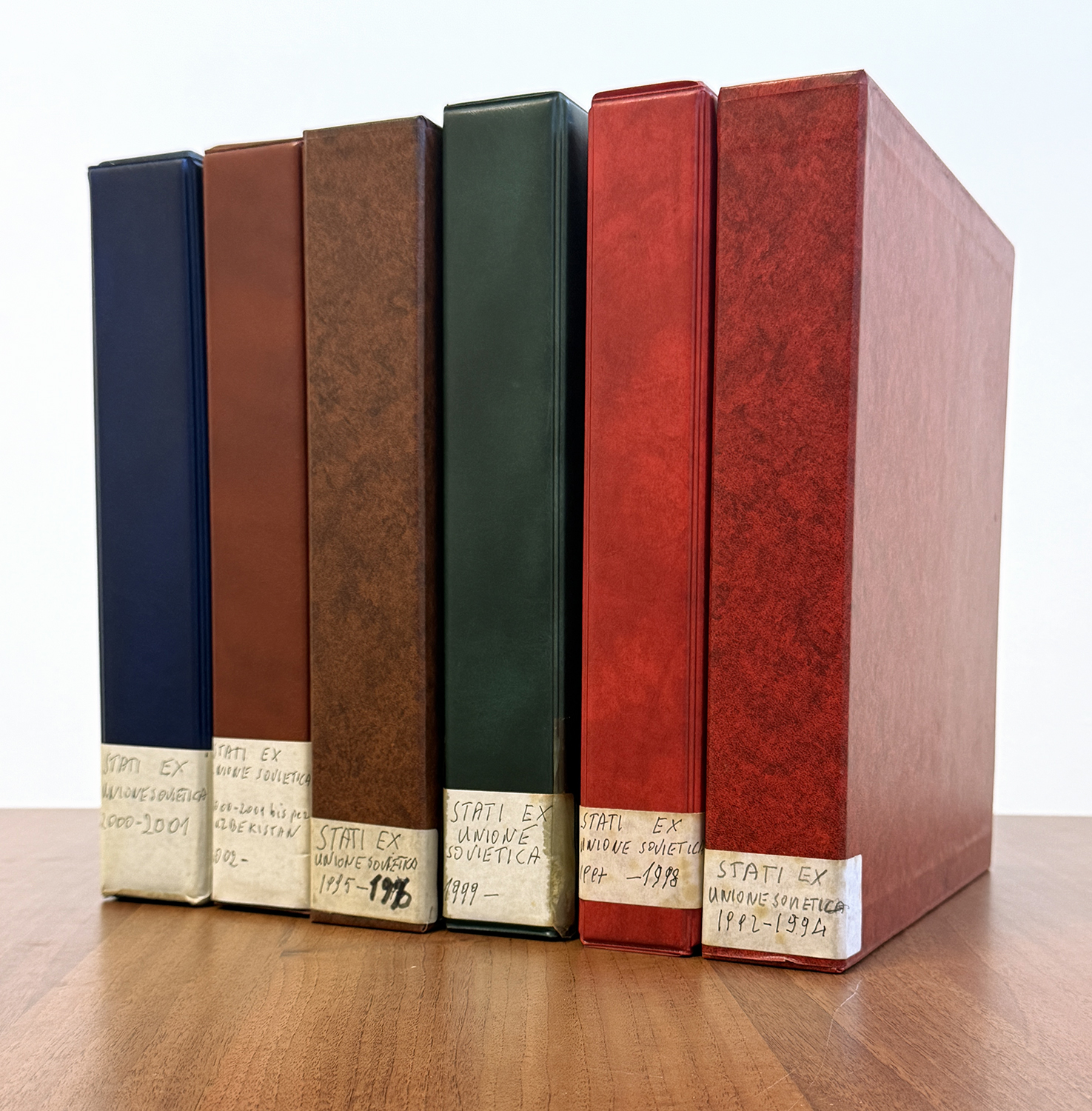 REPUBBLICHE EX SOVIETICHE 1992/2003 - Collezioni complete di francobolli, foglietti e libretti nuovi del periodo, gomma integra, in 6 album Marini, in uno scatolone. Stati presenti: Armenia, Azerbaigian, Bielorussia, Georgia, Kazakistan, Kirghizistan, Moldavia, Tagikistan, Ucraina e Uzbekistan. Ottima qualità.