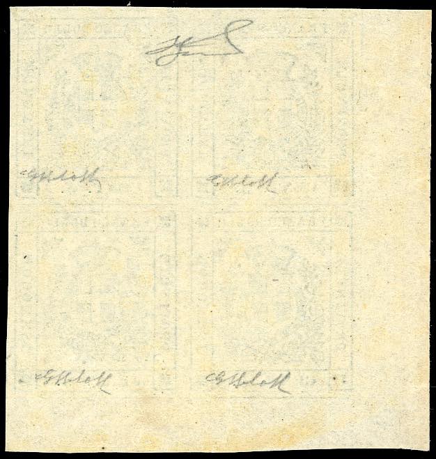 Lot 95 - 1859 - 5 cent. verde scuro (12b), blocco di quattro, angolo ...