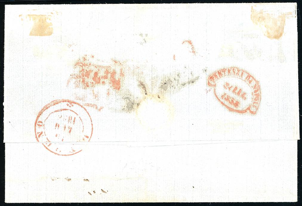 1858 - 20 grana rosa brunastro, I tavola (12), perfetto, isolato su lettera da Napoli 24/7/1858 a Livorno, manoscritto "per vapore ... Read more