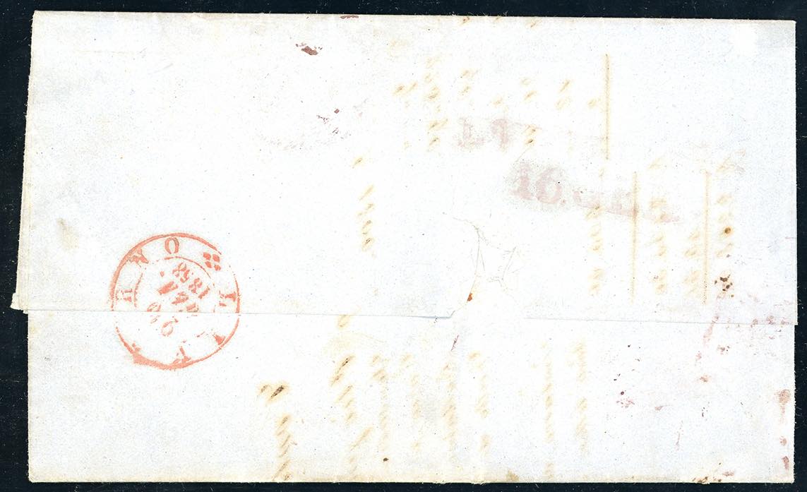 1858 - 20 grana rosa lillaceo, I tavola (12a), perfetto e ben marginato, su lettera da Napoli 16/1/1858, primo mese d'uso, a Livorno, via ... Read more