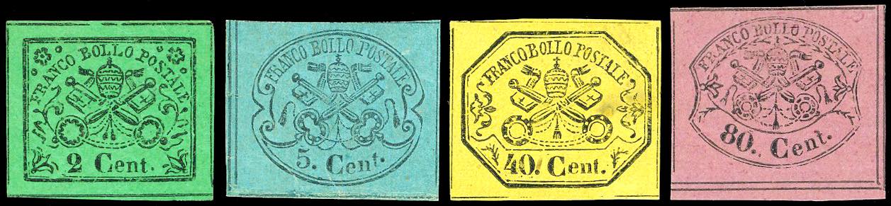 1867 - Seconda emissione, quattro valori (13,16,19,20), nuovi, gomma originale, perfetti. Molto freschi. Vaccari, Ferrario.