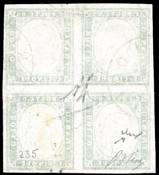Lot 614 - 1863 - 5 cent. verde cupo (13E), blocco di quattro, ...