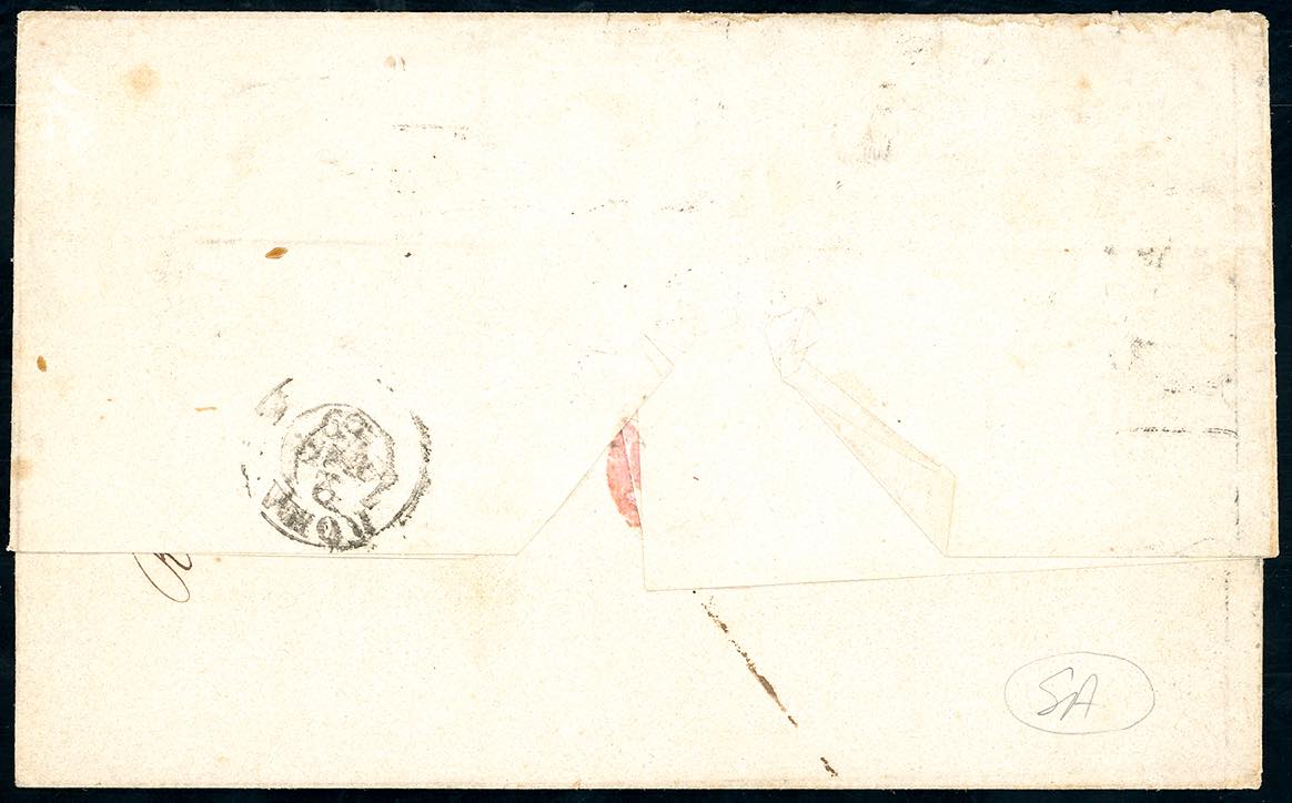 1859 - 2 crazie azzurro (13), striscia orizzontale di tre, tre ottimi margini, sfiorata a sinistra, su lettera da Firenze 30/4/1859 a Roma. ... Read more