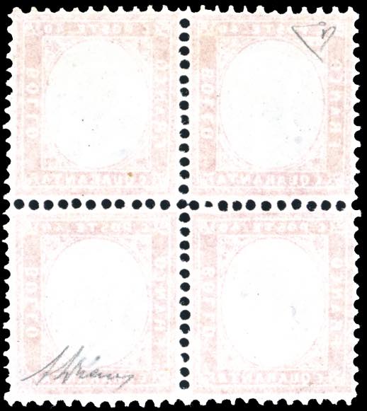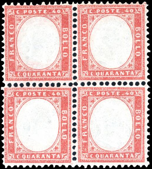 Lot 909 - 1862 - 40 cent. rosso carminio (3), blocco di quattro, ...