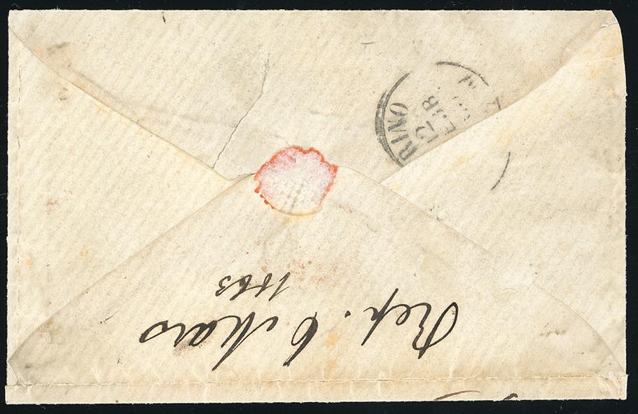 1863 - 15 cent. azzurro tipo Sardegna (11), in affrancatura mista con 5 cent. e 40 cent. IV emissione di Sardegna (13E,16E), perfetti ad eccezione del 5 cent., leggermente sfiorato a destra, su busta da Genova 4/2/1863 a Londra. Rara affrancatura mista per l'estero! A. ed E.Diena, Chiavarello. Ex coll. Imperato.