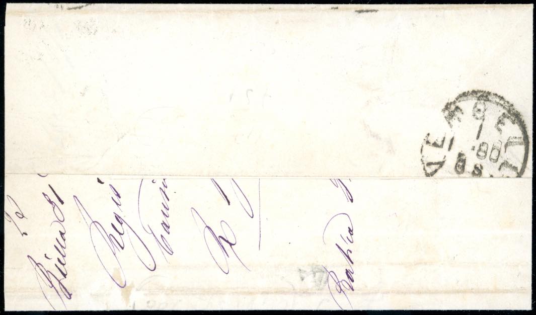 1879 - 2 cent. su 0,30 lire Servizio soprastampati, SOPRASTAMPA CAPOVOLTA (32b), perfetto, isolato su sovracoperta di lettera da Biella ... Read more