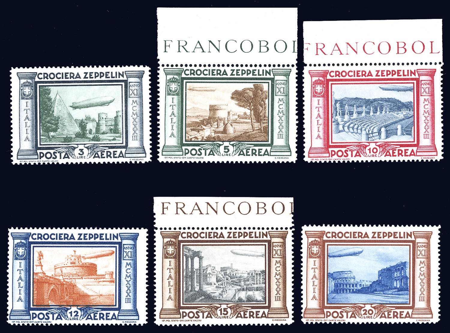 1933 - Zeppelin, serie completa (45/50), gomma originale integra, perfetti e di ottima qualità.