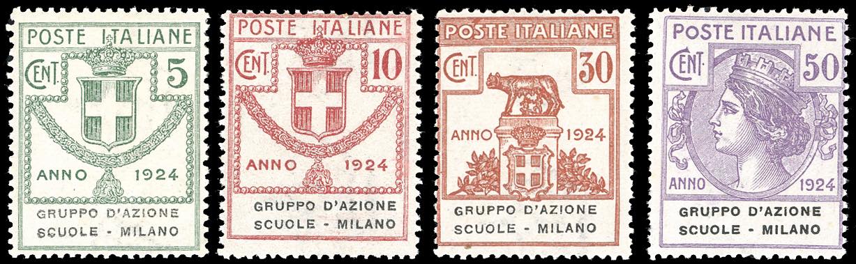 GRUPPO D'AZIONE SCUOLE-MILANO 1924 - Serie completa (38/41), nuovi, gomma originale integra, perfetti. Ferrario.