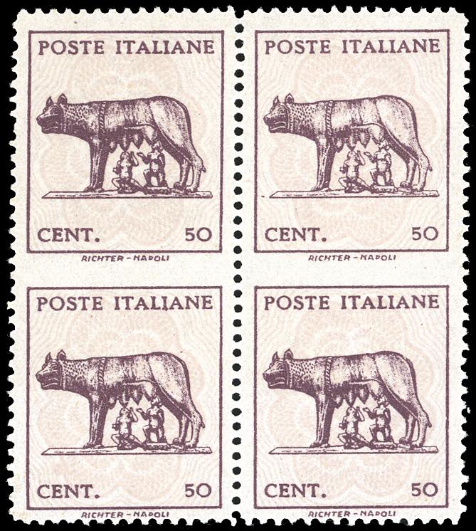 Lot 1633 - 1944 - 50 cent. Lupa, senza filigrana, blocco di quattro ...