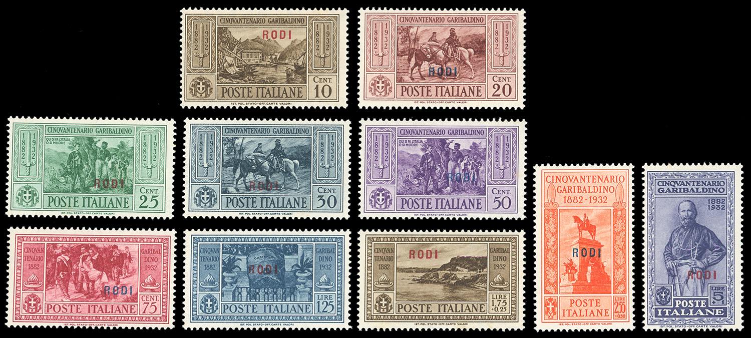 RODI 1932 - Garibaldi, serie completa (20/29), gomma originale integra, perfetti, ottima qualità.