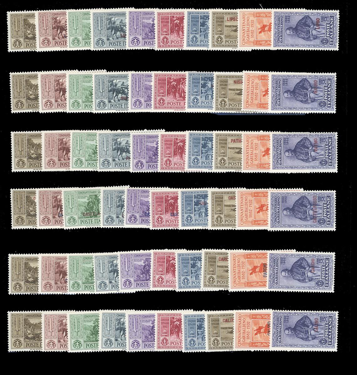 GIRO ISOLE 1932 - Garibaldi, giro completo comprendente le tredici isole e Castelrosso, serie complete, gomma originale integra, perfetti.