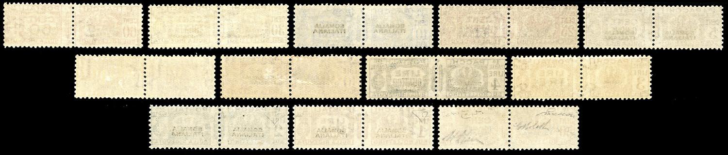 PACCHI POSTALI 1928/41 - Fascio al centro, soprastampa del I tipo, serie completa (54/65), gomma originale integra, ad eccezione del 10 lire che presenta una leggera traccia di linguella, perfetti e molto freschi. Il raro 50 cent. firmato G.Bolaffi, A.Diena, cert. Oro Raybaudi e Vaccari, 1 lira e 2 lire cert. E.Diena.