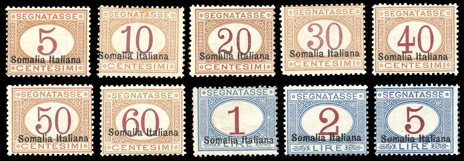 SEGNATASSE 1920 - Soprastampati in basso, serie completa (23/32), nuovi, gomma originale, leggera traccia di linguella, perfetti. Firmati ... Read more