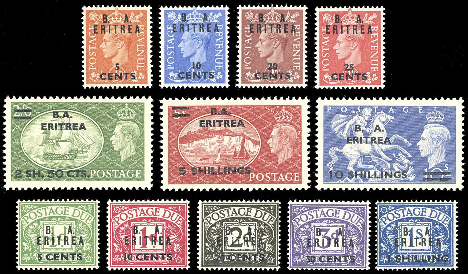 OCCUPAZIONE BRITANNICA ERITREA 1948/51 - Tutte le emissioni di posta ordinaria e segnatasse del periodo (1/13,14/26,27/33,T1/T5,T6/T10), ... Read more