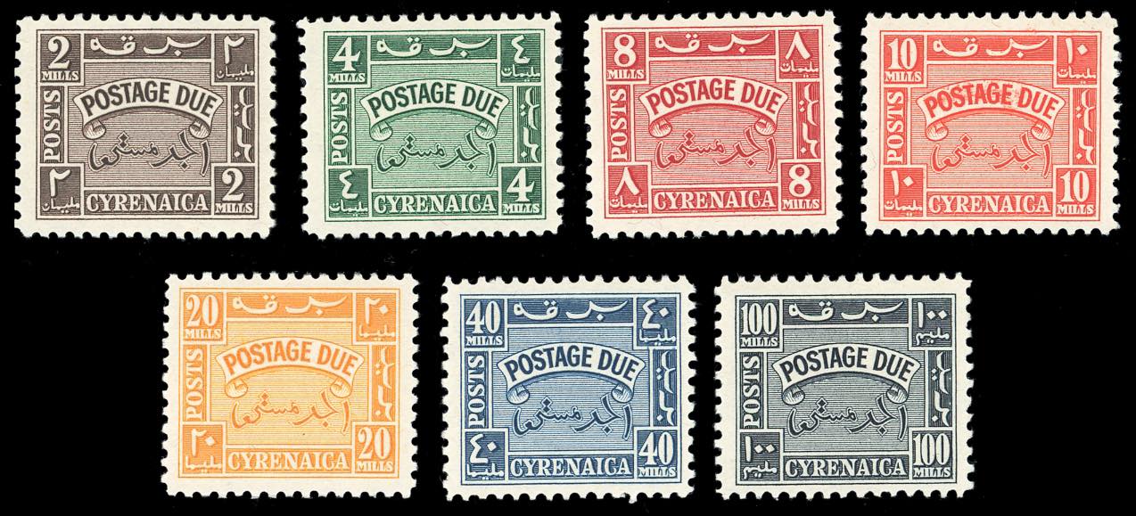 CIRENAICA AMMINISTRAZIONE AUTONOMA SEGNATASSE 1950 - Serie completa (1/7), gomma originale integra, perfetti. Ferrario.