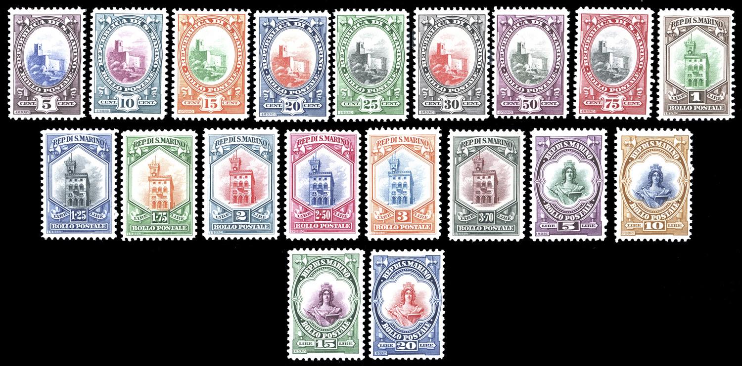 1929/35 - Veduta, Palazzo del Consiglio, Libertà, serie completa (141/158), gomma originale integra, perfetti e molto freschi. Cert. ... Read more