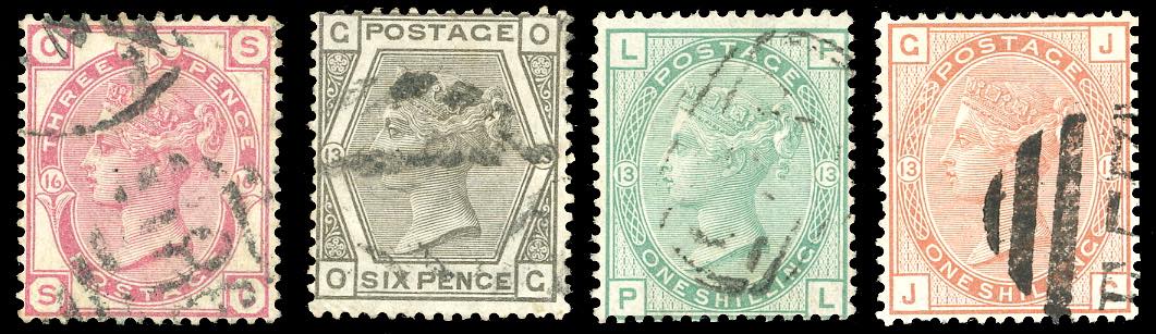 GRAN BRETAGNA 1873/80 - Nuovi valori modificati, serie completa (Unif.51/54), usati, perfetti.